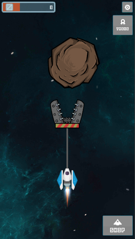 • Kumpulkan asteroid dengan cakar untuk memperbaiki kapal dan membuka lebih banyak fitur