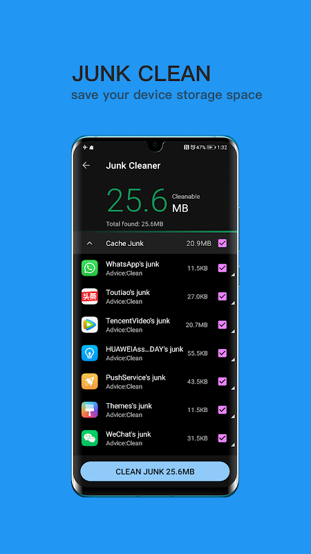 Tampilkan detail aplikasi, bantu Anda membersihkan aplikasi dan file APK yang tidak perlu, dan mengosongkan lebih banyak ruang penyimpanan ponsel.