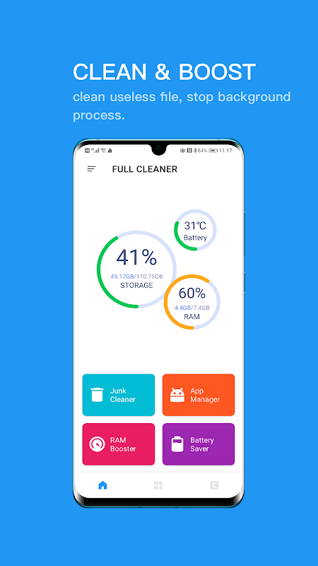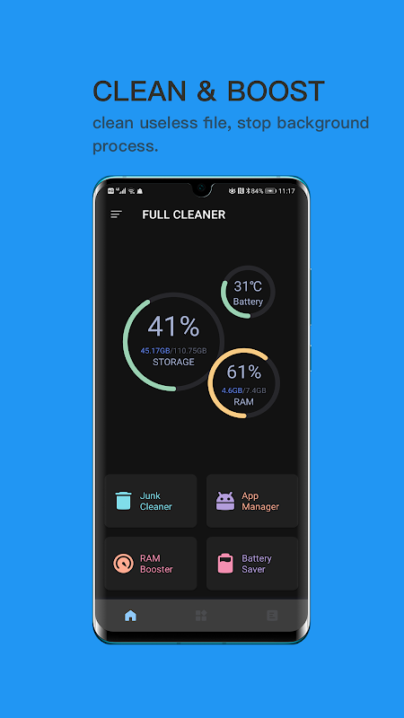 Full Cleaner adalah aplikasi pembersihan dan akselerasi ponsel yang disesuaikan dengan tema gelap. Dapat membantu Anda dengan cepat membersihkan file sampah ponsel dan menghemat ruang perangkat Anda.