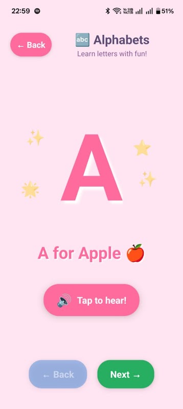 Dengan visual yang penuh warna, hewan-hewan lucu, dan suara-suara yang menyenangkan, anak-anak dapat dengan mudah menjelajahi topik pembelajaran dasar seperti alfabet, angka, warna, dan hewan secara interaktif.
