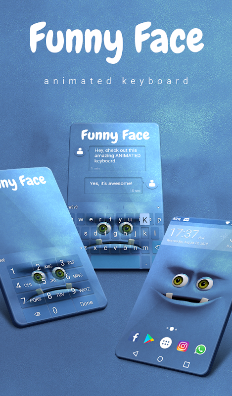 Wallpaper Wajah Lucu adalah aplikasi personalisasi mengagumkan yang memberikan tampilan baru penuh gaya pada ponsel Android Anda. Aplikasi wallpaper dan keyboard keren Wave membantu memperbarui perangkat hanya dalam 3 langkah: