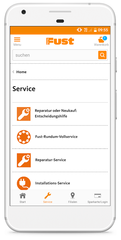 Dengan aplikasi Fust Anda dapat menggunakan toko online lengkap dengan lebih dari 60.000 artikel pada smartphone dalam resolusi optimal dan ramah pengguna yang sangat baik. Dengan fitur kartu tabungan terintegrasi, Anda menerima voucher belanja untuk pembelian perlengkapan dan aksesori.
