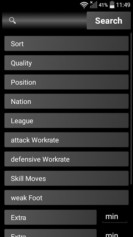 You can set special search filters to find the players that really fit into your team. In addition you can sort the players by different attributes like pace, so the app is showing you the fastest players first.