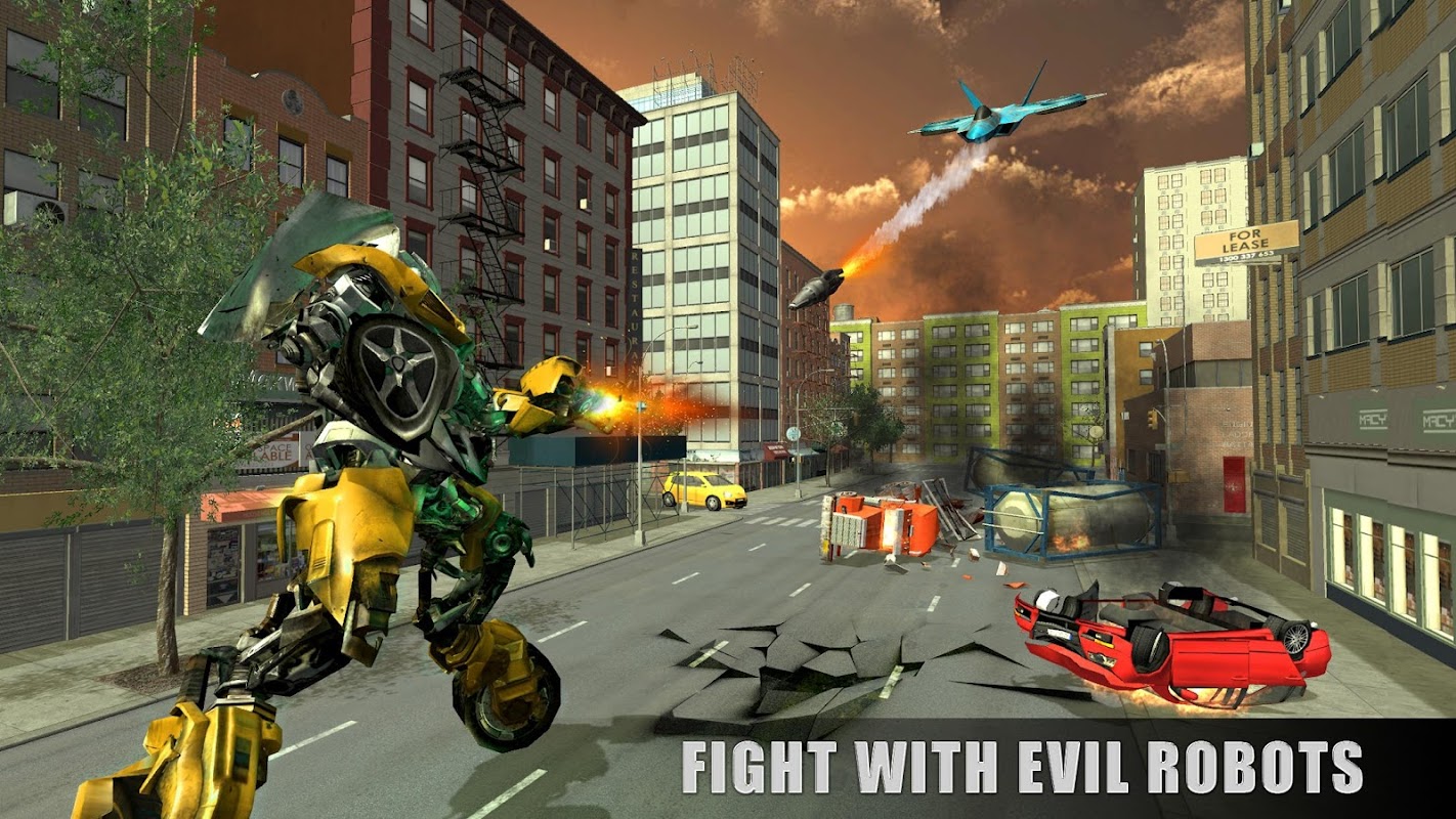 Robot Pesawat Masa Depan Transformasi Petualangan Jet Wars akan menentukan siapa sebenarnya robot tempur jet atau superhero robot dengan kemampuan robot transformator bergerak cepat yang luar biasa, yang dapat membebaskan kota futuristik dari robot robot X dan robot terbang pemimpin tertinggi mereka yang menggunakan transformator dan robot mobil robot yang sangat merusak. robot. Kalahkan semua robot sejati seperti mesin pembunuh terbang setan yang memiliki simulator penerbangan pesawat terbang yang sangat canggih. Pakar bertunangan dengan mobil robot futuristik atau dengan cepat mengakhiri senjata robot robot mobil yang digunakan dalam perang kota futuristik atau perang Robot.