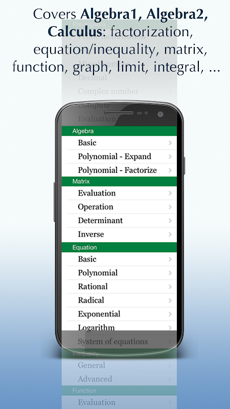 - Lebih dari 1.500 sampel masalah matematika dan langkah-langkah solusi sepenuhnya animasi