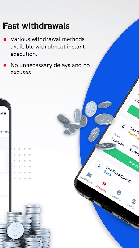 • Akses instan ke dompet Anda untuk mentransfer dana antar akun perdagangan Anda