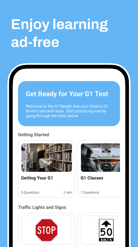 • Soal Latihan Nyata 📝: Akses soal tes G1 Ontario asli, diperbarui untuk tahun 2025.