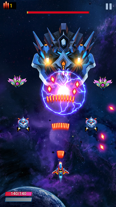 + Tembak dan hancurkan: Jelajahi berbagai galaksi dan hancurkan gelombang musuh alien, termasuk bos yang menantang. Gunakan senjata dan perisai Anda yang kuat untuk bertahan hidup.