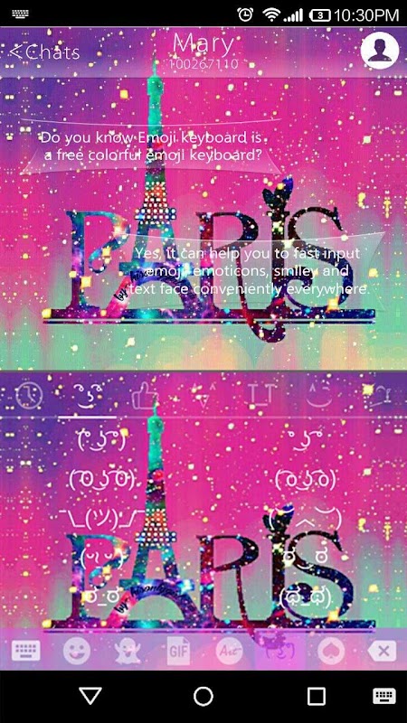 Galaxy Paris Emoji Keyboard Theme for Emoji,Emoticons and Smileys Keyboard.please install Emoji Keyboard from Emoji Keyboard -Cute,Emoticons first. More cool themes and features are awaiting you there!