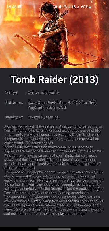 Database besar videogame. Anda dapat menemukan judul favorit Anda dan melihat informasi yang sama.