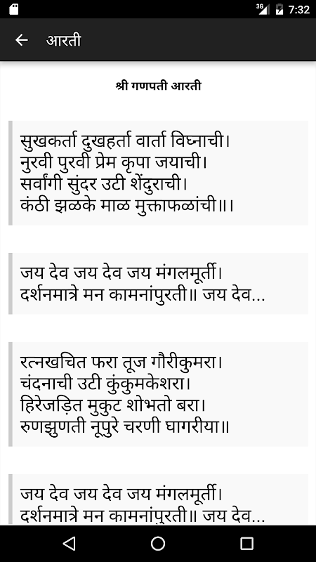 This is a Pro version of popular app called Ganapati Atharvashirsha by CHKSound. This consists of Ganapati and popular Marathi Aratis of other gods like Vitthal, Durga Devi, Shankar and Datta.