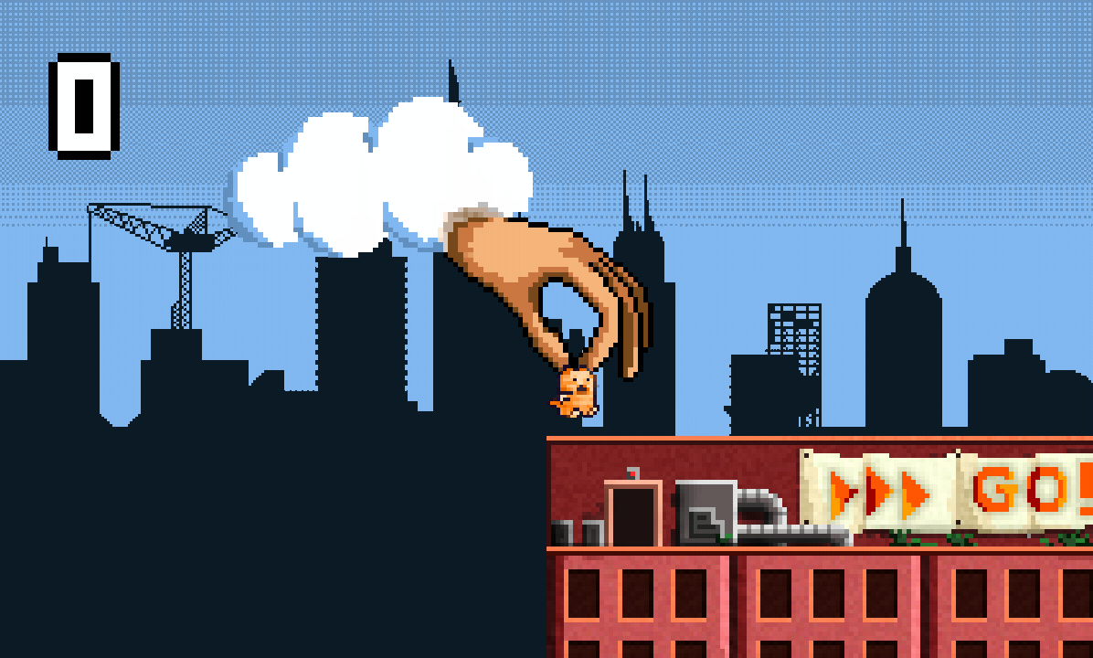 Gap Cat! Run on some roofs, tap to hop to the next one, get as far as you can, simple. Is there a reason? Nope! Cats don't have reasons. Can I win? Nope! But you can try.