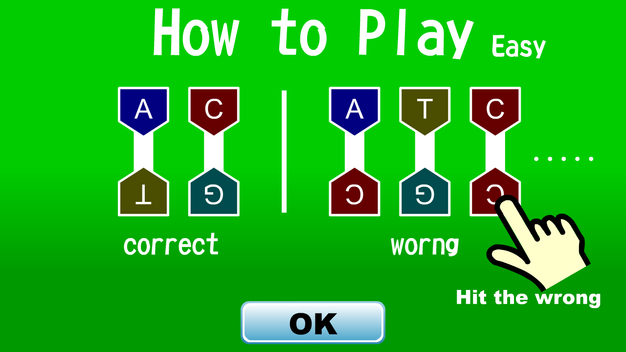According to base pairing rules (A with T and C with G), hydrogen bonds bind the nitrogenous bases of the two separate polynucleotide strands. An AT base pair with two hydrogen bonds, a GC base pair with three hydrogen bonds. In this game, you can learn the correct base pairing of nucleotides, and hydrogen bonds between the base pairs.