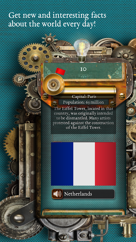 Tebak bendera negara, temukan berapa banyak ibu kota yang dapat Anda sebutkan, dan pelajari fakta-fakta baru tentang destinasi favorit Anda di seluruh dunia. Kuis ini menampilkan informasi menarik dan informasi tentang 196 bendera dan ibu kota!
