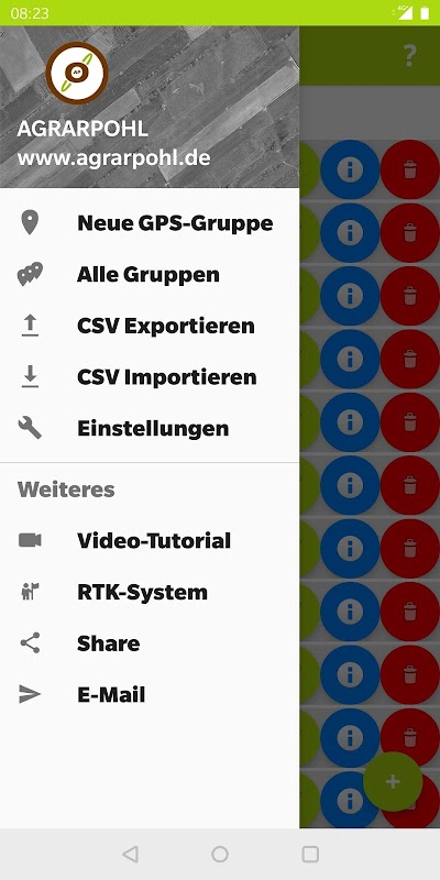 • Flächen per GPS-Erfassung oder Manuel auf dem Display erfassen und Größe berechnen.