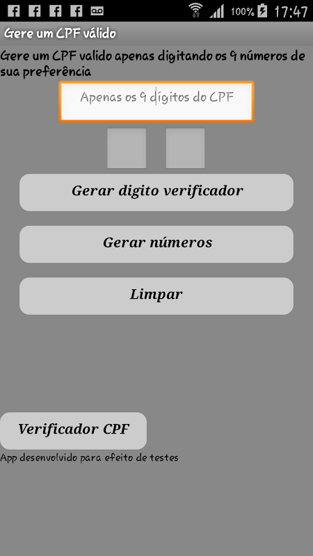 Ideal para você que precisa de um CPF válido para fazer algum teste, ou até mesmo para você que precisa lembrar do seu digito verificador.