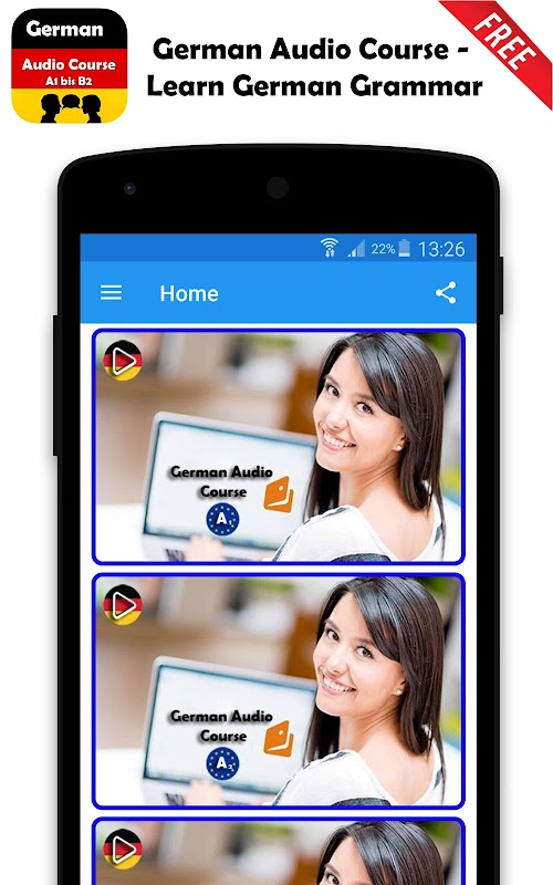 App Audio Jerman Kursus ini - Belajar Tata Bahasa Jerman akan membantu Anda untuk mencapai tingkat pertama Jerman (A1) hingga (b2) sesuai dengan referensi umum Eropa.