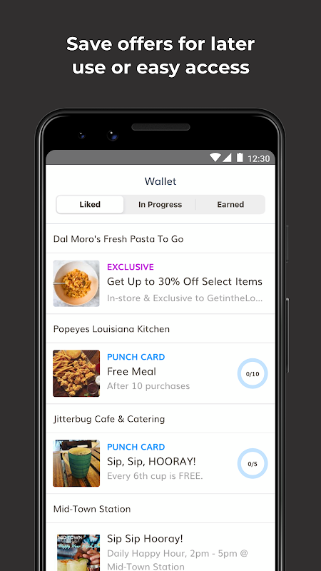 Unduh aplikasi gratis kami untuk menemukan penawaran eksklusif, kelola kartu punch Anda, dapatkan hadiah, dan temukan pengalaman baru dari bisnis di komunitas Anda.