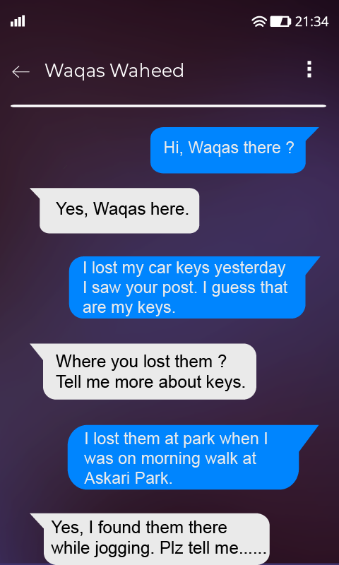1. Jika Anda kehilangan dan mencari item atau objek Anda di aplikasi Hilang dan Ditemukan maka Anda dapat dengan mudah berkomunikasi hanya dengan mengklik pada item untuk masuk chat dengan orang yang telah memposting.