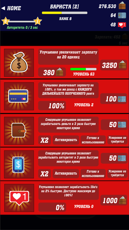 Get to the President - Получи Президента кликер — кликер, симулятор и аркада в одном флаконе. Вам придется пройти через всю политическую иерархию чтобы стать Высшим Чином - Президентом. В игре есть функция получения и улучшения зарплаты, покупка персонажей, аренда офиса, приобретение автомобилей и даже домов. Вкладывай, трать, получай и приумножай прибыль. Стань Президентом, нанимай своих Заместителей, Мэров и Депутатов. Главное кликай, кликай и кликай кликером в кликер.