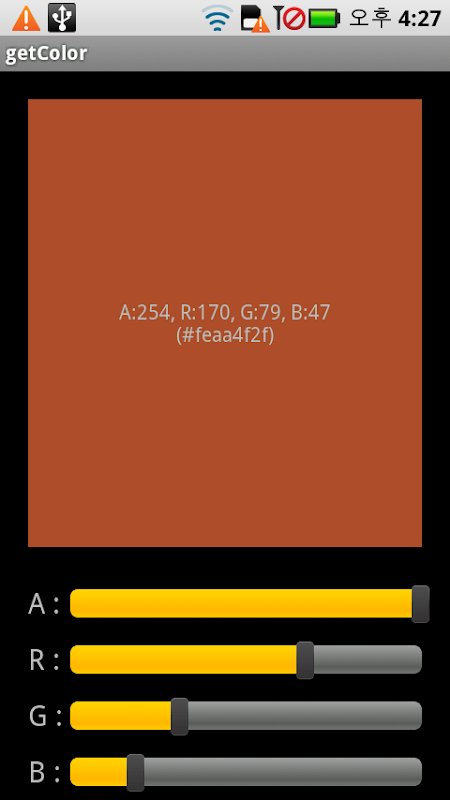 개발자를 위한 색깔값을 알기위한 프로그램, 실제 기기에서 해당되는 컬러값의 표시를 간단히 알아 개발에 활용할 수 있음