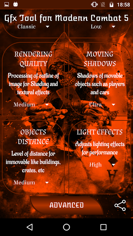 Mulai dari kisaran menengah ke ponsel andalan Anda dapat menggunakan alat ini untuk mengoptimalkan dan meningkatkan grafis game MODERN COMBAT 5 untuk pengalaman yang lebih baik.