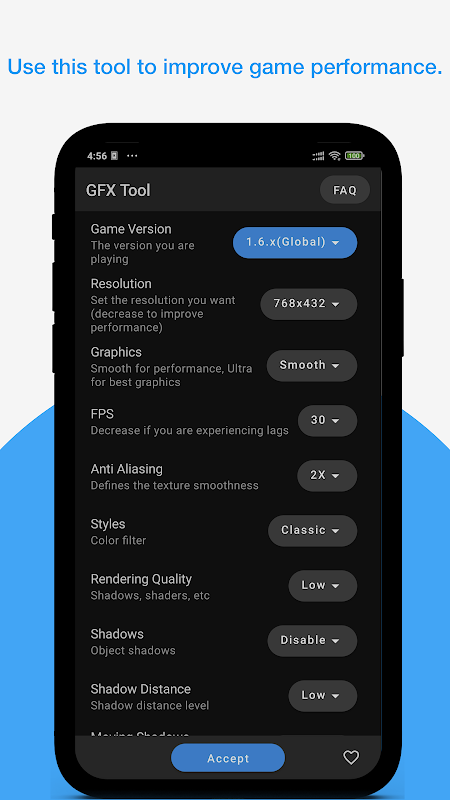 Optimalkan resolusi game untuk pengalaman bermain game yang maksimal dengan GFX Tool - game booster! Aplikasi alat game kami adalah solusi unik untuk pengalaman bermain game terbaik.