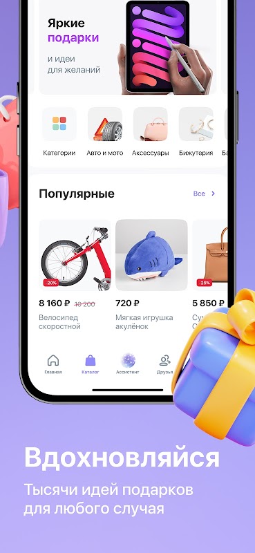 GiftBow Wishlist membantu Anda tidak hanya dengan hadiah, namun juga mewujudkan tujuan Anda. Bangun lemari pakaian pribadi Anda, tambahkan hadiah foto, dan bagikan pembelian Anda dengan nyaman di satu tempat. Simpan impian Anda, pantau tujuan dan rencana Anda dengan GiftBow Wishlist.