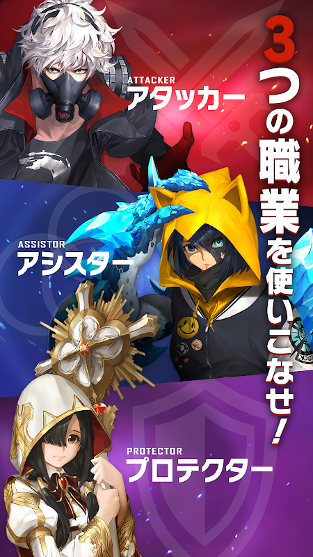 敵のタイプによって、「アタッカー」「アシスター」「プロテクター」の3種の職業と、