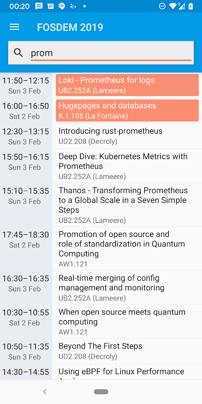 Browser untuk jadwal konferensi seperti MCH2022, FOSDEM, LCA (linux.conf.au), CCC/37C3 dan banyak lagi. (Format yang didukung: Pentabarf/Frab/Pretalx/xCal/iCal)