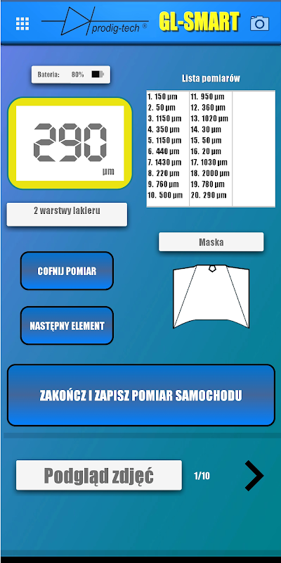 Aplikasi GL-SMART yang dikembangkan untuk Android memungkinkan koneksi dengan pengukur cat seri GL-SMART dari Prodig Tech. Bergantung pada model meteran, kami mendapatkan sejumlah fungsi baru yang tidak tersedia untuk meter standar. Aplikasi saat ini berjalan di Android 6 atau lebih tinggi.