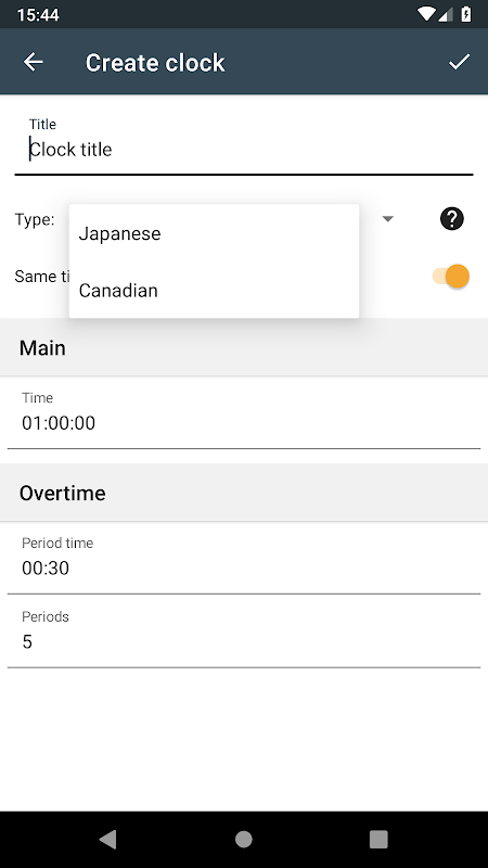 Gunakan berbagai penghitung waktu yang telah ditentukan sebelumnya untuk game Go dan Shogi atau buat game Anda sendiri.