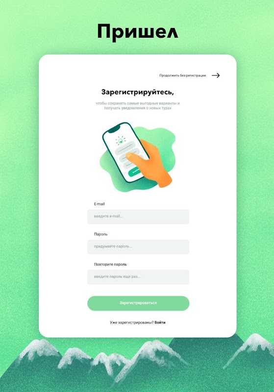 Go for it! — умный сервис для поиска самых дешевых туров от всех туроператоров. Скачайте приложение, выберите любимые направления, и мы оповестим вас, когда настанет лучший момент для покупки.
