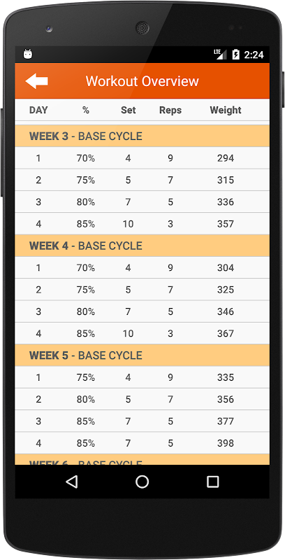 Aplikasi ini menghitung angka-angka berdasarkan entri 1-RM Anda dan Anda baik untuk pergi. Semua nomor harian dan mingguan akan otomatis mengisi untuk kemudahan penggunaan.