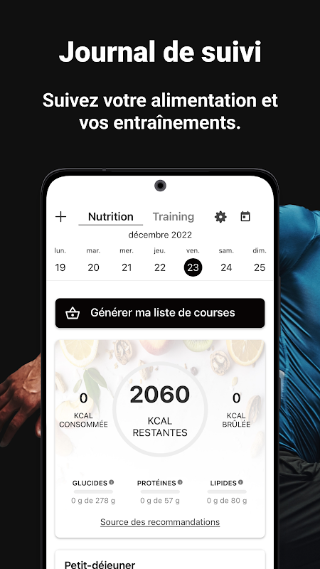 Dalam jadwal Anda, Anda dapat menambahkan program olahraga dan nutrisi sendiri.