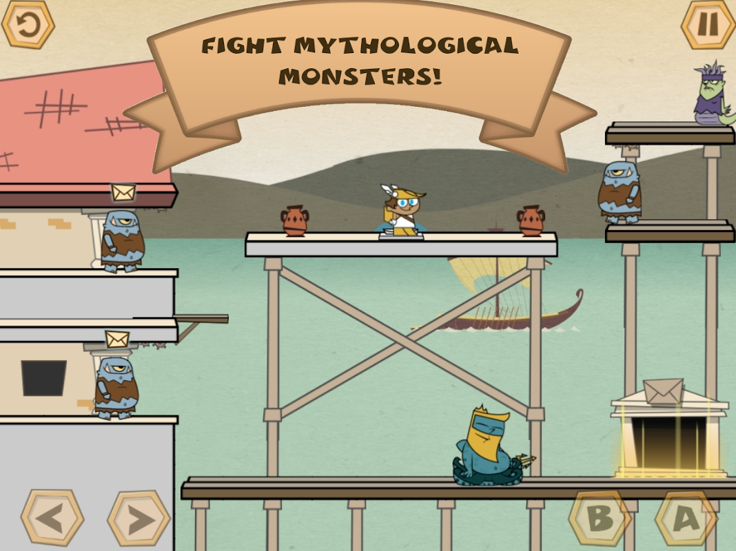 After a mishap involving Hermes and Apollo's chariot, the gods' mail has been scattered across Greece. Hermes's father, Zeus, charges him with the task of finding and delivering the lost mail. Guide Hermes as he navigates various terrains using his mythical dash ability.