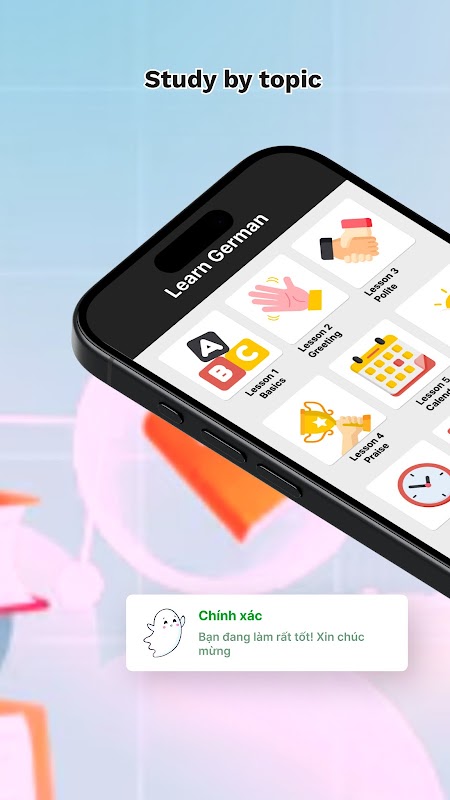 Dengan aplikasi ini, Anda dapat belajar bahasa Jerman dengan mudah dan cepat, bahkan secara offline, dengan lebih dari 12.000 kosakata, teori, dan poin tata bahasa yang disusun berdasarkan tema yang paling umum. Selain itu, Anda bisa berlatih berbicara bahasa Jerman.