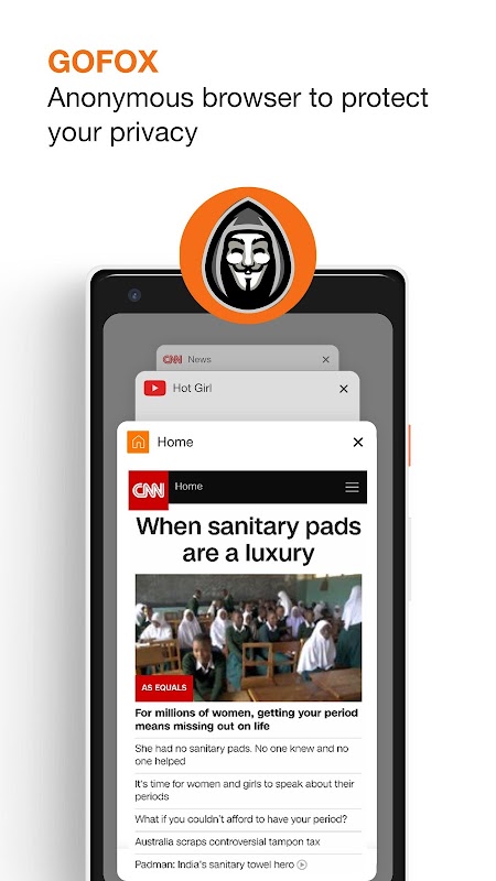 More than a regular web proxy browser, the incognito browser app brings a great online experience with your phone. Browser fast speed, convenient, secure is all that GoFox gives you. Get web browser and explorer app to enjoy surfing the web, accessing social networks anytime you like. If you like the internet privacy browser app, rate 5* for us.