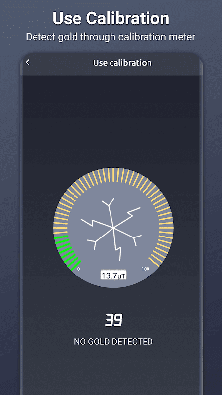 Pelacak emas atau aplikasi pencari emas mengukur medan magnet dengan sensor magnetik tertanam. Tingkat medan magnet (EMF) di alam sekitar 49 T (mikro tesla) atau 490 mG (mili gauss); 1μT = 10mG. Ketika logam apapun (baja, besi) dekat, tingkat medan magnet akan meningkat. Jika Anda mencari pencari emas, ini adalah alat terbaik untuk Anda!