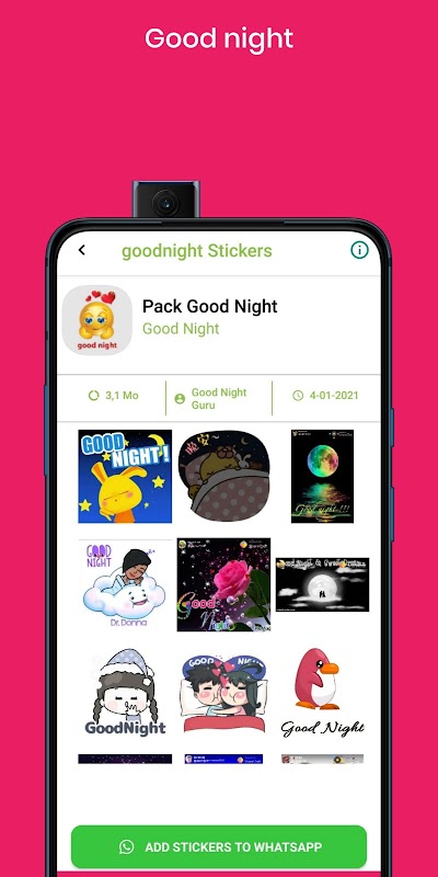 🤗Memperkenalkan Stiker Selamat Malam untuk WhatsApp WASticker! Ekspresikan keinginan terhangat Anda dan ciptakan suasana yang tenang dalam percakapan Anda. Temukan koleksi stiker menyenangkan yang menampilkan bulan, bintang, dan pesan menenangkan. Unduh sekarang dan kirimkan mimpi indah untuk orang yang Anda cintai🤠