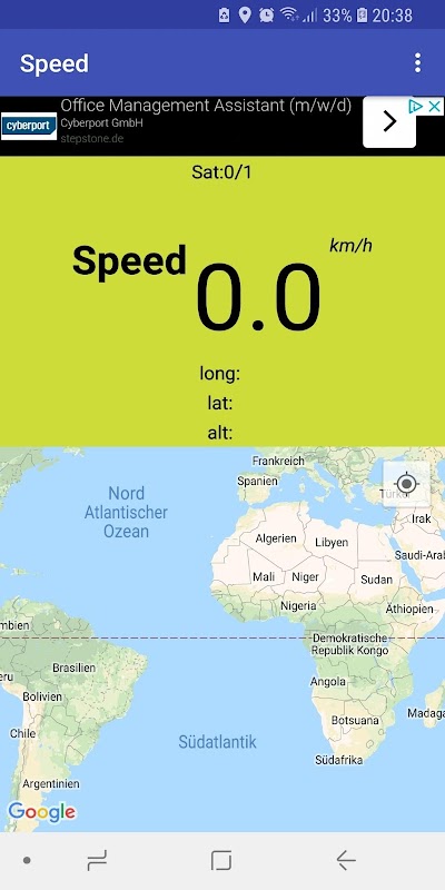 Lihat kecepatan Anda dan lihat di mana Anda berada. Terlepas dari peta, lintang, bujur dan ketinggian ditampilkan. Tampilkan peta.