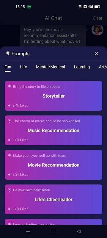 Selain latihan berbicara, GPT Talk juga menawarkan 200 perintah karakter ChatGPT. Anda dapat mengobrol dengan karakter yang ditunjuk di jendela, menghasilkan konten berkualitas lebih tinggi. Ini memfasilitasi gaya hidup kreatif, dengan asisten seperti asisten rekomendasi lagu, asisten rekomendasi film, pendongeng, game petualangan teks, penyemangat hidup, pelatih pribadi, penata rias, pewawancara kerja, dan banyak lagi. Fungsi asisten ini tidak hanya membuat belajar lebih menyenangkan tetapi juga membuat percakapan Anda lebih berwarna.