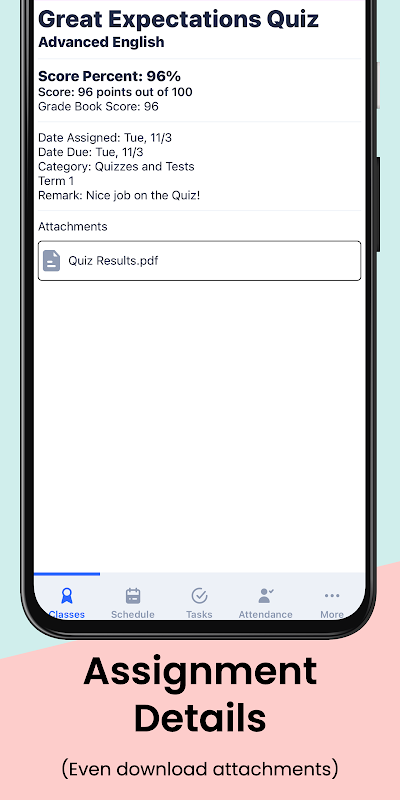 - Menampilkan tugas yang baru saja dinilai sehingga orang tua dan siswa dapat bekerja dengan guru sesuai kebutuhan