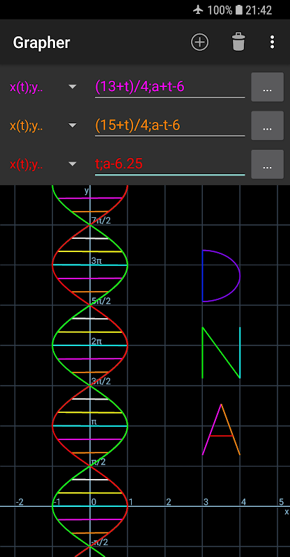 Grapher adalah pembuat plot persamaan yang cepat dan efektif, mampu menggambar fungsi apa pun, memecahkan persamaan, dan menghitung ekspresi. Terutama jika Anda seorang pelajar, guru atau insinyur, aplikasi ini dibuat dengan memikirkan Anda! Berbagai macam fungsi standar tersedia, termasuk fungsi trigonometri & hiperbolik, koordinat kutub, diferensiasi, dan lainnya. Apa pun yang Anda ketik akan diproses dan ditampilkan secara instan oleh mesin matematika yang canggih, baik dalam mode 2D maupun 3D. Lebih jauh, fungsi dapat mereferensikan satu sama lain dengan namanya.