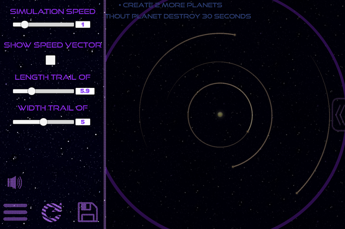 • Customize your planets. You can choose their appearance, set your own weight and radius, and choose whether it will attract or repel other planets.