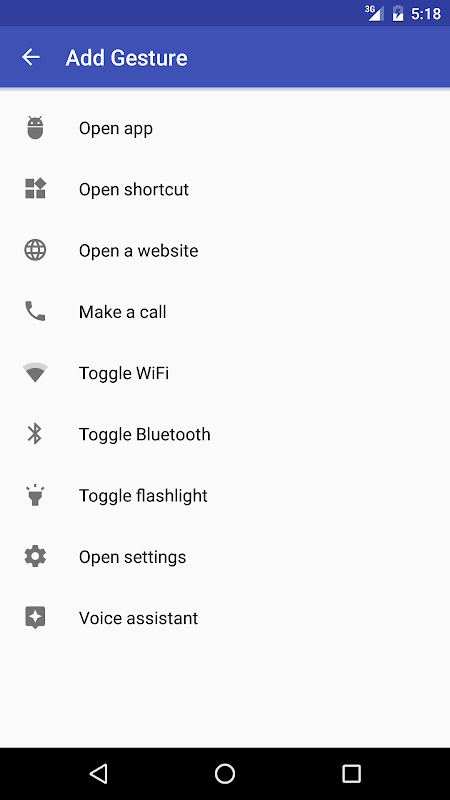 Anda dapat menautkan berbagai tindakan ke gerakan ini: membuka aplikasi, mengaktifkan pengaturan (seperti wifi dan Bluetooth), melakukan panggilan, dll.