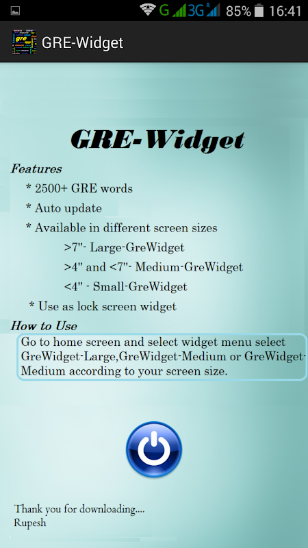 Go to home screen and select widget menu select GreWidget-Large,GreWidget-Medium or GreWidget-Medium