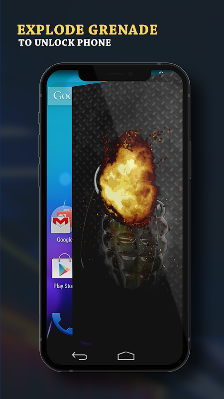Di aplikasi layar kunci granat tangan ini, ketuk kunci granat tangan yang realistis, yang akan meledak dan menghasilkan efek suara setelah itu ponsel akan dibuka kuncinya. Animasi ledakan granat yang halus dan cepat membuatnya menyenangkan bagi Anda untuk menggunakan aplikasi layar kunci ini setiap hari. Ini adalah layar kunci granat peledak unik yang akan membuat Anda langsung jatuh cinta.