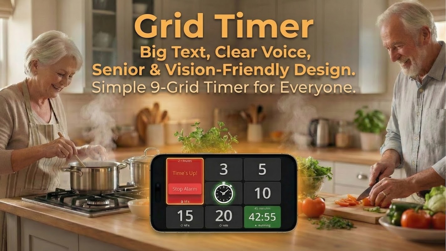 Kalau aplikasi modern terasa terlalu rumit atau jam standar sulit dibaca, Timer Grid dibuat untuk Anda. Kami menghilangkan animasi dan menu yang tidak perlu, menyisakan yang penting: angka besar dan tata letak grid 3×3 yang rapi.