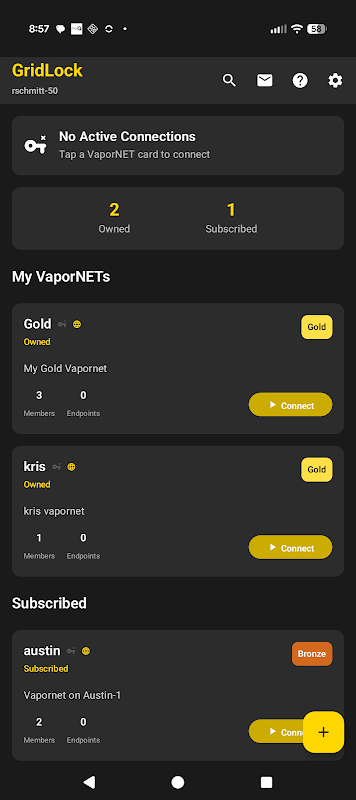 GridLock menciptakan jaringan mesh VPN pribadi yang disebut VaporNET. Dengan menggunakan teknologi VPN WireGuard, perangkat Anda terhubung melalui terowongan terenkripsi—semua lalu lintas mengalir secara eksklusif melalui VPN. Data Anda tetap berada di antara perangkat Anda, dilindungi oleh enkripsi standar industri.